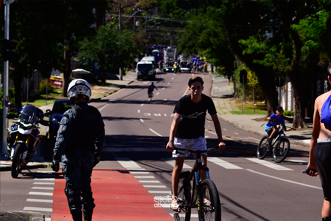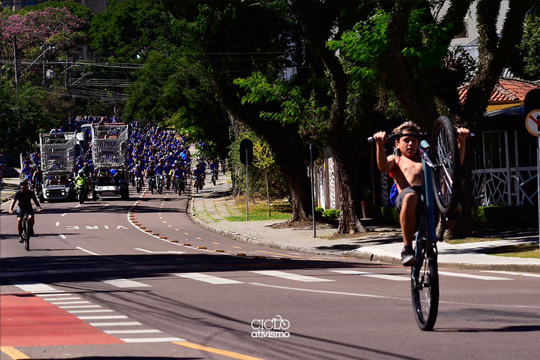 Trabalho foto-documental sobre os núcleos da bicicleta em Curitiba desde 2012. Tema central segurança no trânsito. Tem como objetivo dar visibilidade a ciclistas e suas demandas. Utiliza o fotojornalismo como ferramenta de alcance. A intenção é, debater, planejar e atuar na melhoria da infraestrutura viária através da informação.